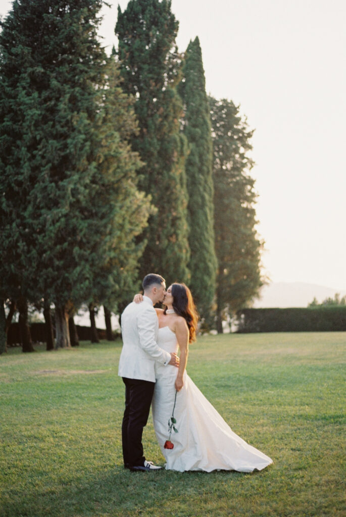 Captured entirely on film, these images beautifully translate the villa’s historic charm and timeless elegance. The soft, warm tones of film photography enhance the textures of the space and the surrounding landscape, giving every moment a cinematic, intimate feel. For couples planning a destination wedding in Italy, this gallery shows how a refined Tuscan villa can set the tone for an unforgettable day!