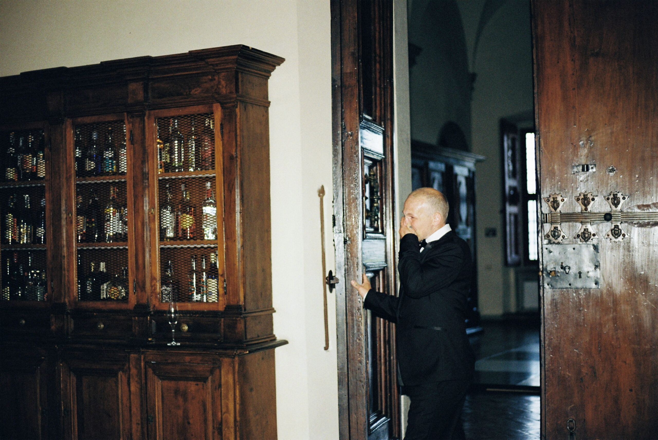 A short walk from the elegant Tenuta di Artimino lies the enchanting San Leonardo church, a hidden gem of intimacy and history. The soft, muted light inside this charming space sets the stage for a ceremony rich with atmosphere and emotion. Shooting on film transformed the low light into a cinematic tapestry of grain and shadow, giving the images a timeless, vintage quality that feels both raw and poetic.