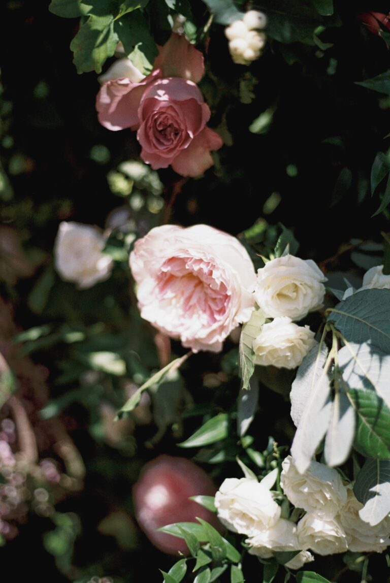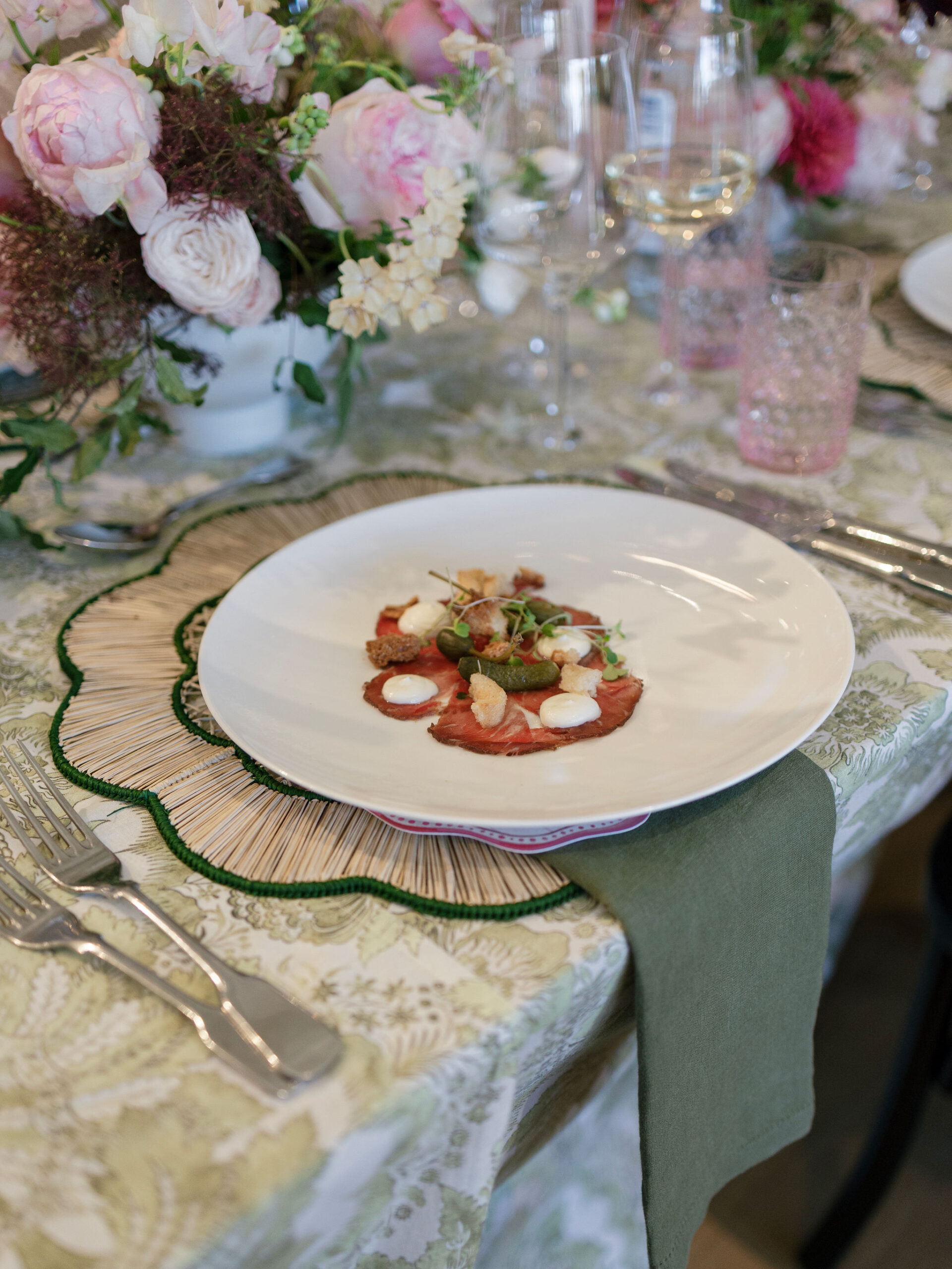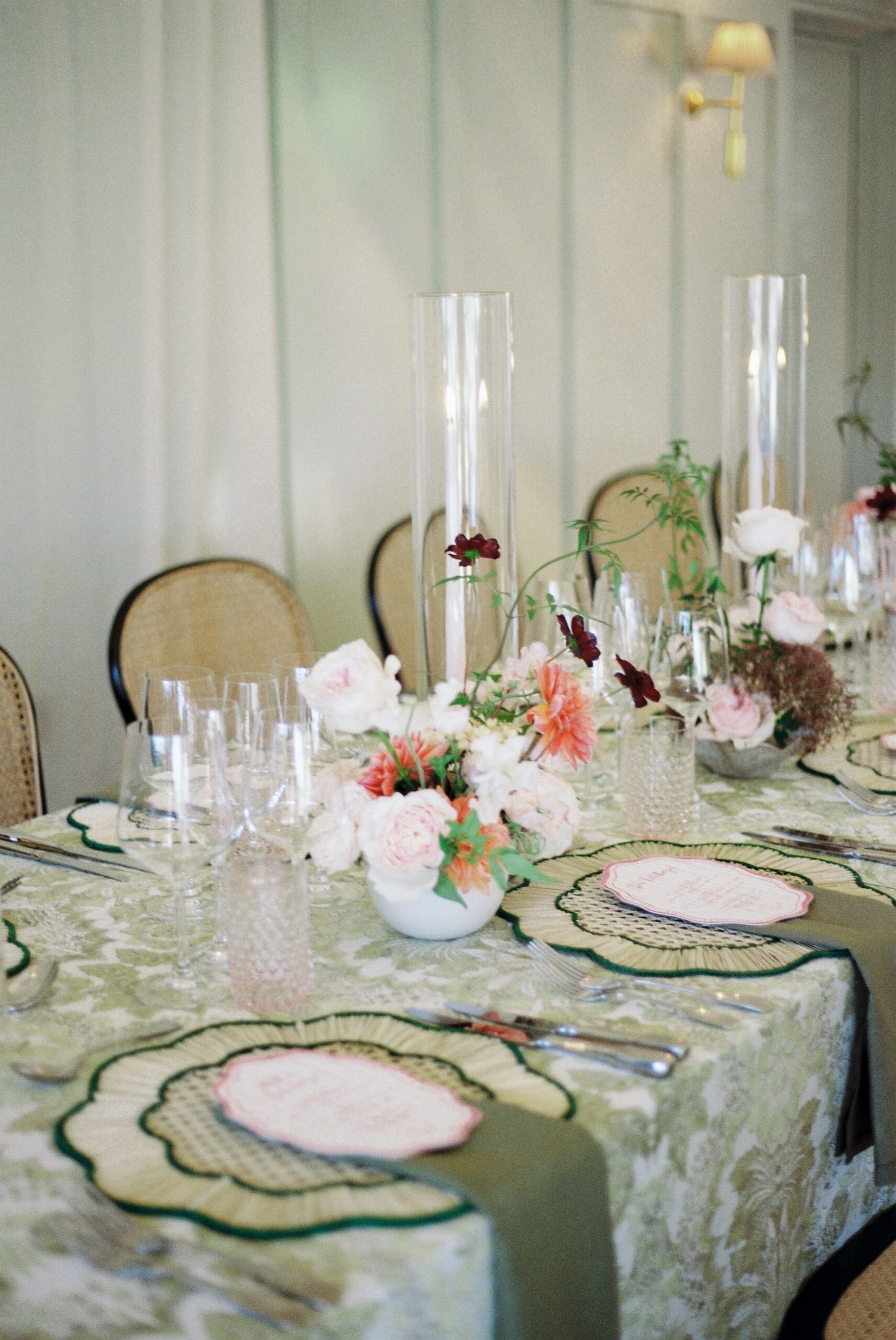 The following day, just after an intimate ceremony, the celebration continued at the beautiful Kin House. Together with Rosie Green Events_, Fox Flora transformed the space with a beautiful wedding breakfast setting, filled with abundant florals and an elegant tablescape that complemented the character of the house perfectly.