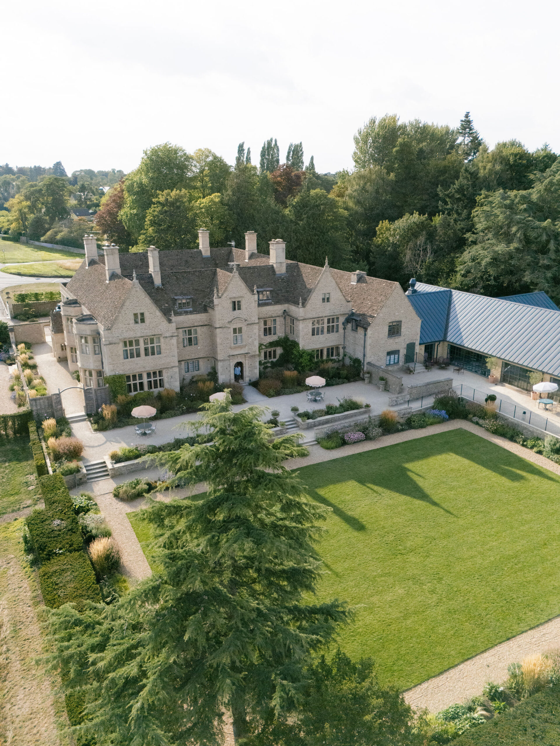 Kin House is a stunning English countryside wedding venue in Wiltshire, blending contemporary style with classic charm. Its stylish interiors and light-filled rooms provide the perfect backdrop for every moment, from bridal prep to the wedding breakfast, which can be transformed with creative touches like elegant draping and floral styling. Outside, the estate’s manicured gardens and modern pool area offer endless opportunities for cinematic portraits and lively celebrations, making Kin House a truly memorable destination for luxury weddings in the Cotswolds.